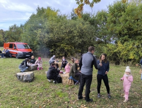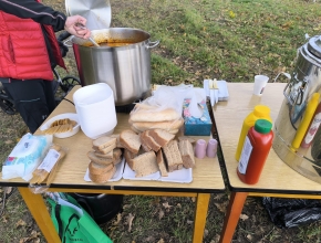 Děti soutěžily o nejvýše létajícího draka, opékaly buřty a marshmallow, rodiče si popovídali u teplé polévky, nechyběla káva, čaj ani sladká odměna pro všechny malé i velké pomocníky.